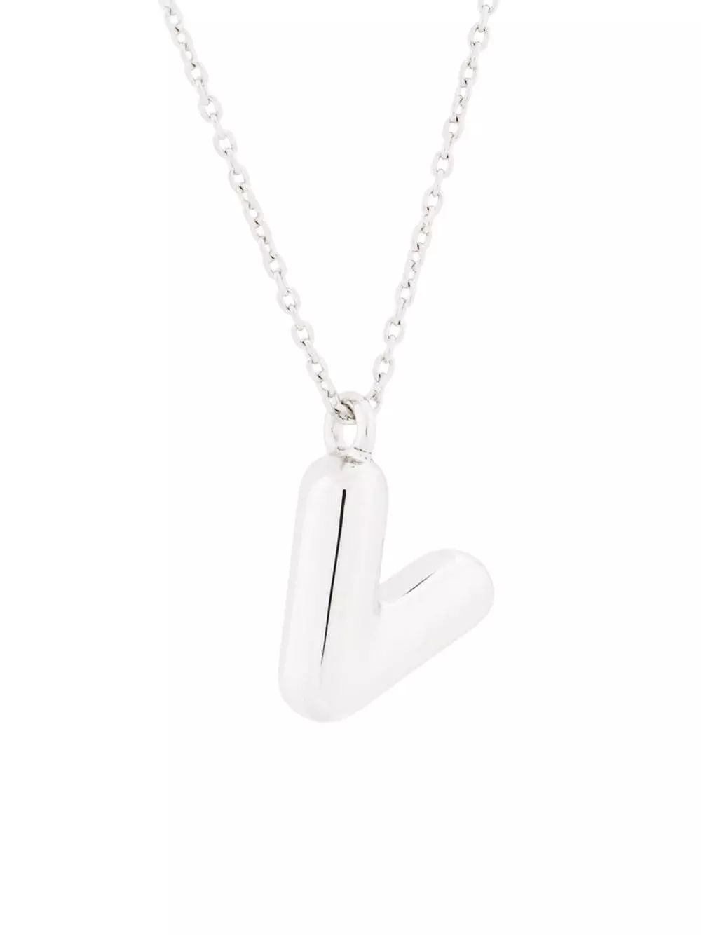 Silver Bubbly V pendant from Marc Jacobs featuring a bead chain and a classic “V” pendant.