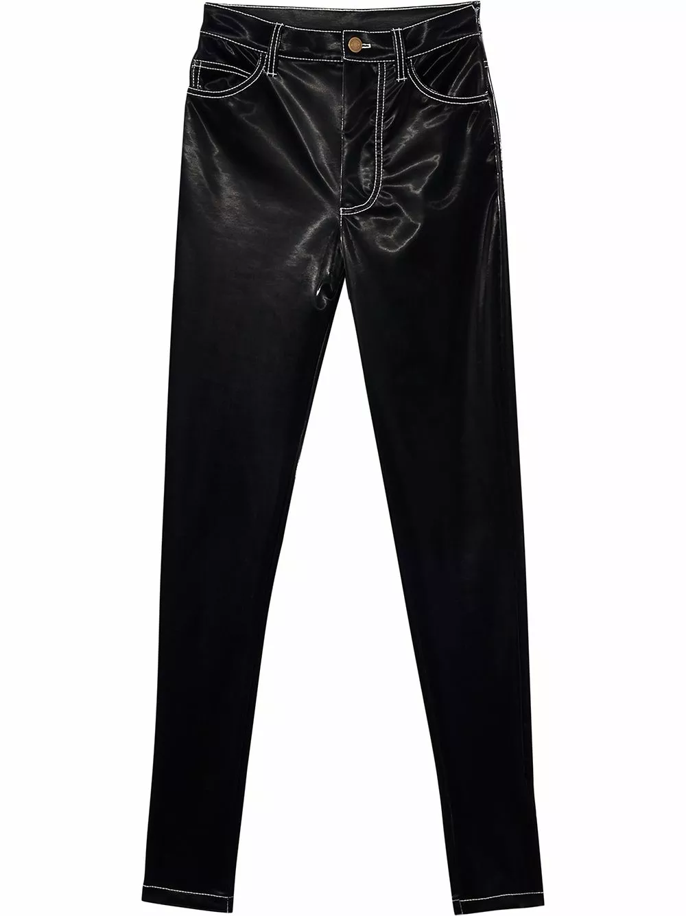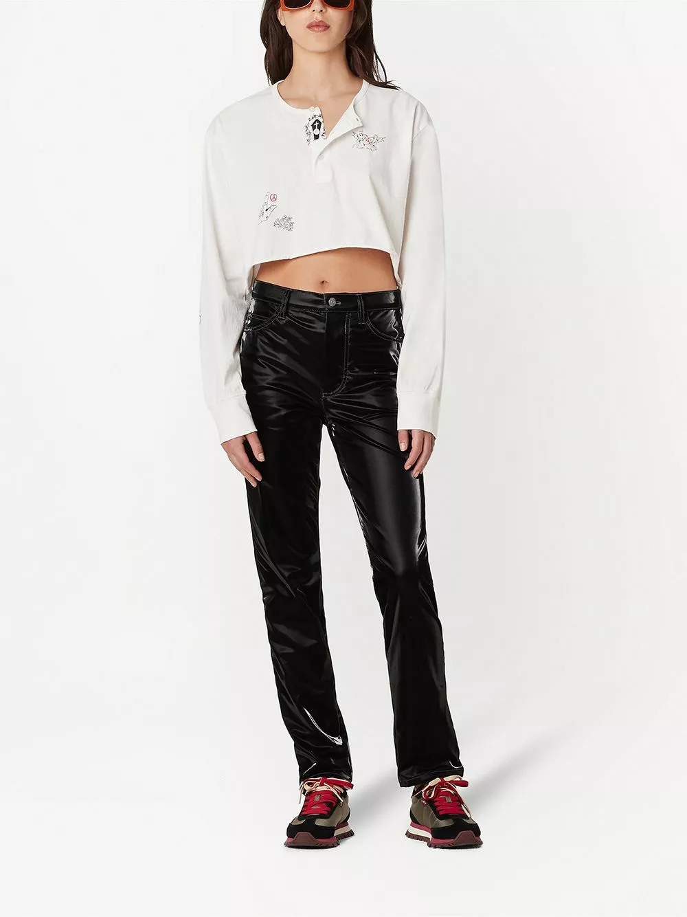 Marc Jacobs’ mix of tradition and unique design is showcased in this pair of trousers. With a classic five-pocket silhouette, the choice of faux-leather material with eye-catching contrasting stitching adds a contemporary twist.