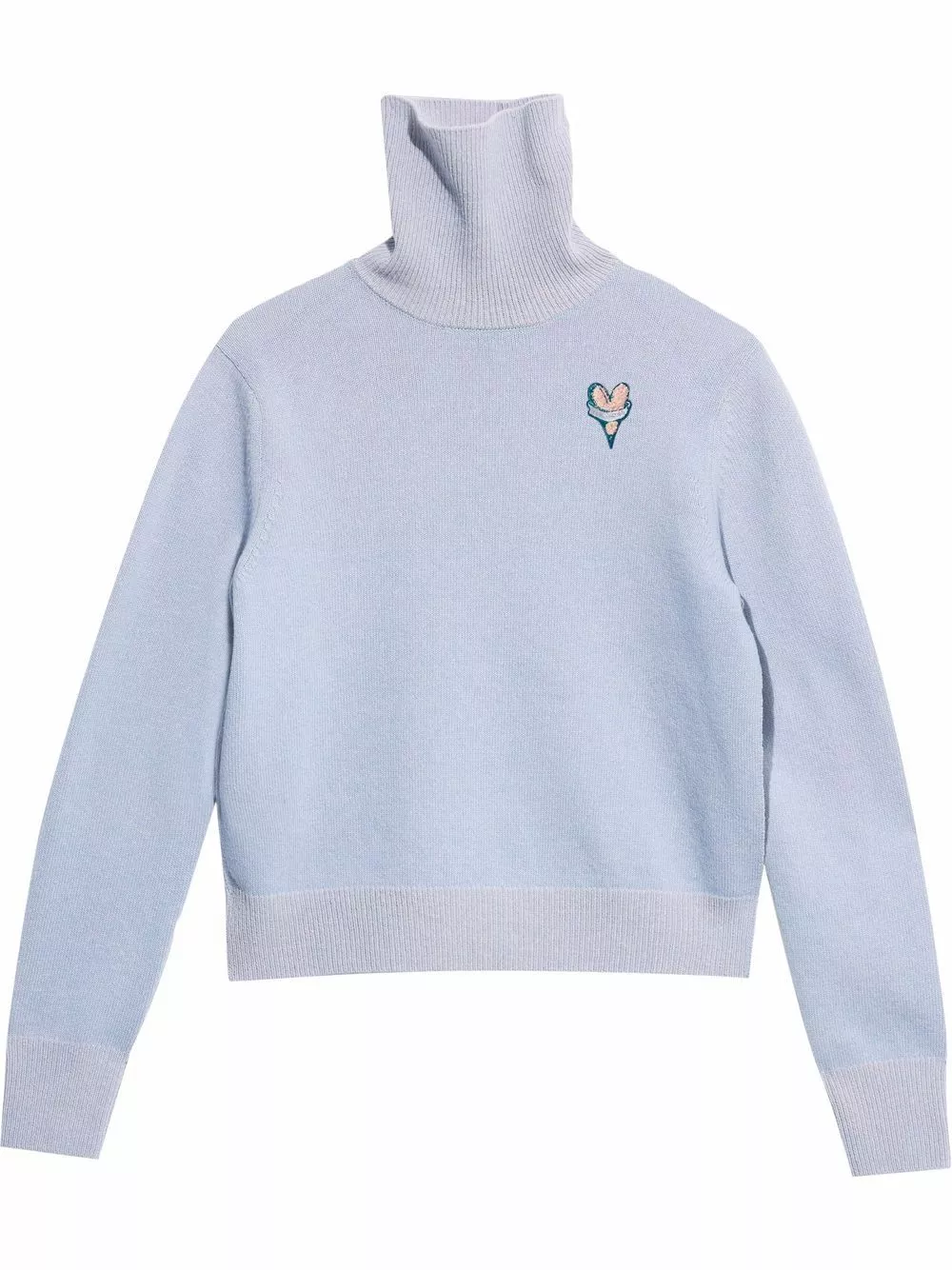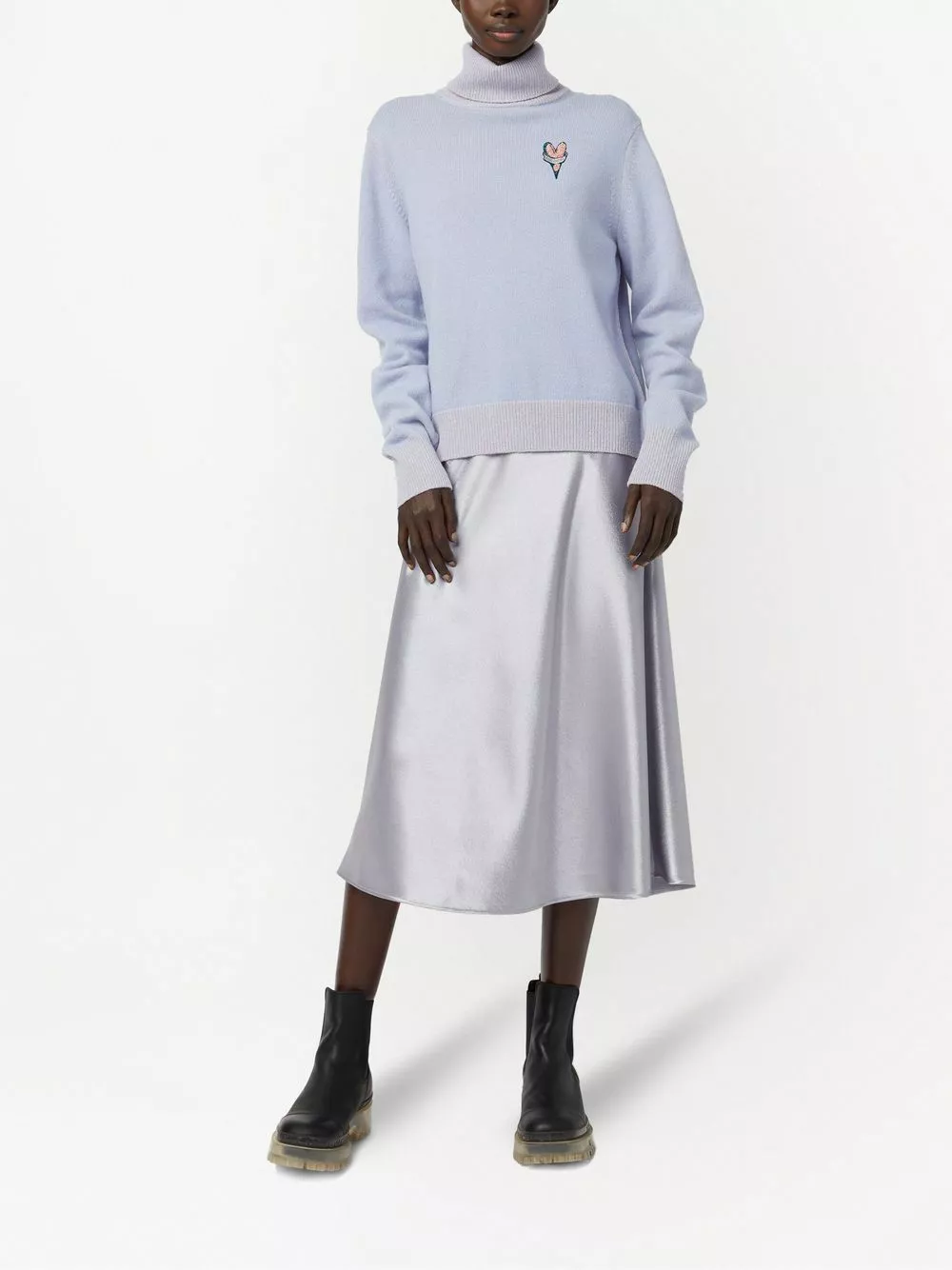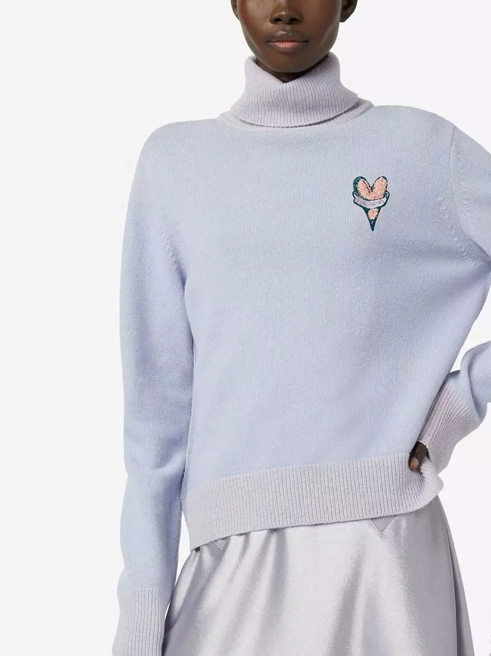 Pairing opulence with innovation, this knitted jumper from Marc Jacobs features an embroidered motif at the chest. Paired with a contrasting roll-neck collar, cuffs and hem, it adds to the understated creative feel of the garment.