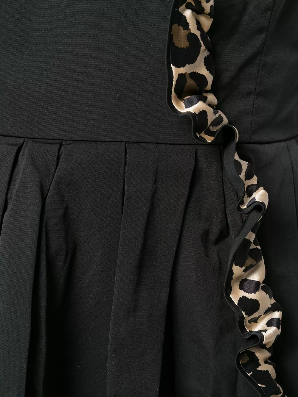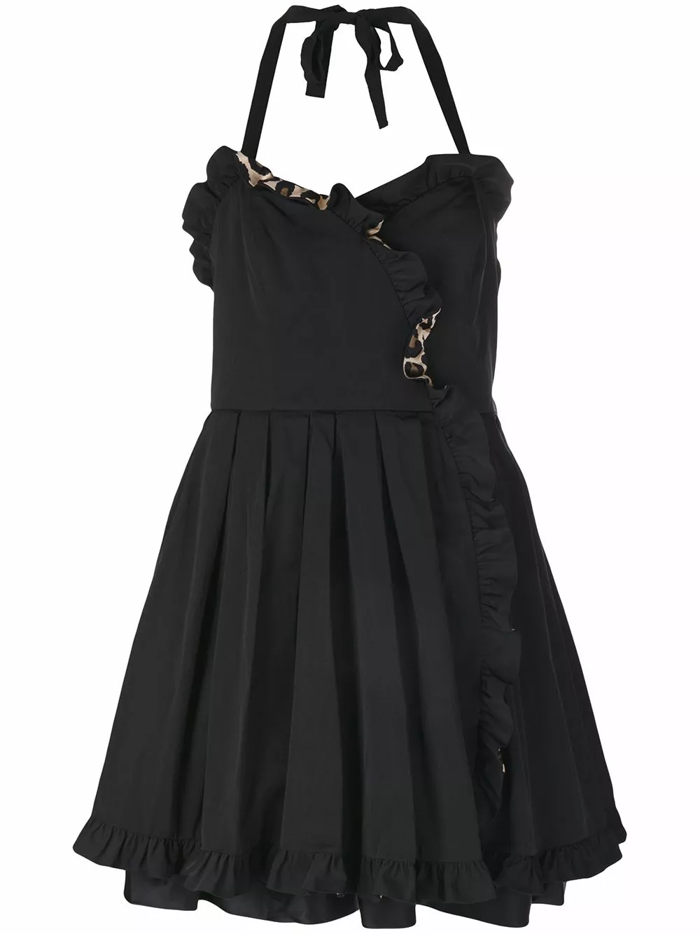 Marc Jacobs is one of the 20th century’s most influential designers – inspired by pop culture and provocative fashion. This black silk blend frilled dress from Marc Jacobs features a sweetheart neckline, a sleeveless design, a back tie fastening, a ruffle trimming with a leopard print, a back elasticated panel, a short length and a ruffled hem.