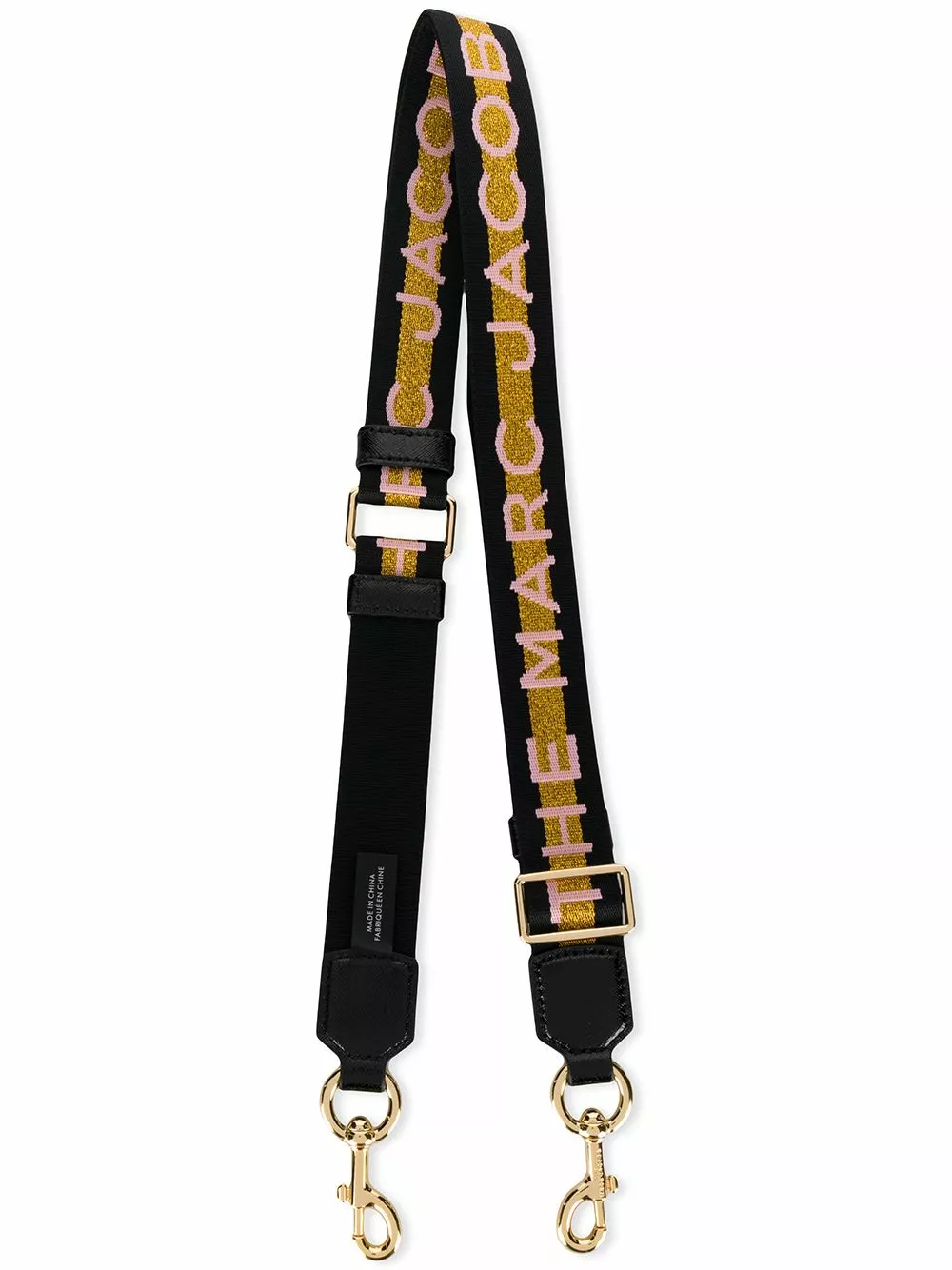 Multicoloured logo webbing strap from Marc Jacobs featuring gold-tone hardware, a lobster clasp closure and an adjustable fit.