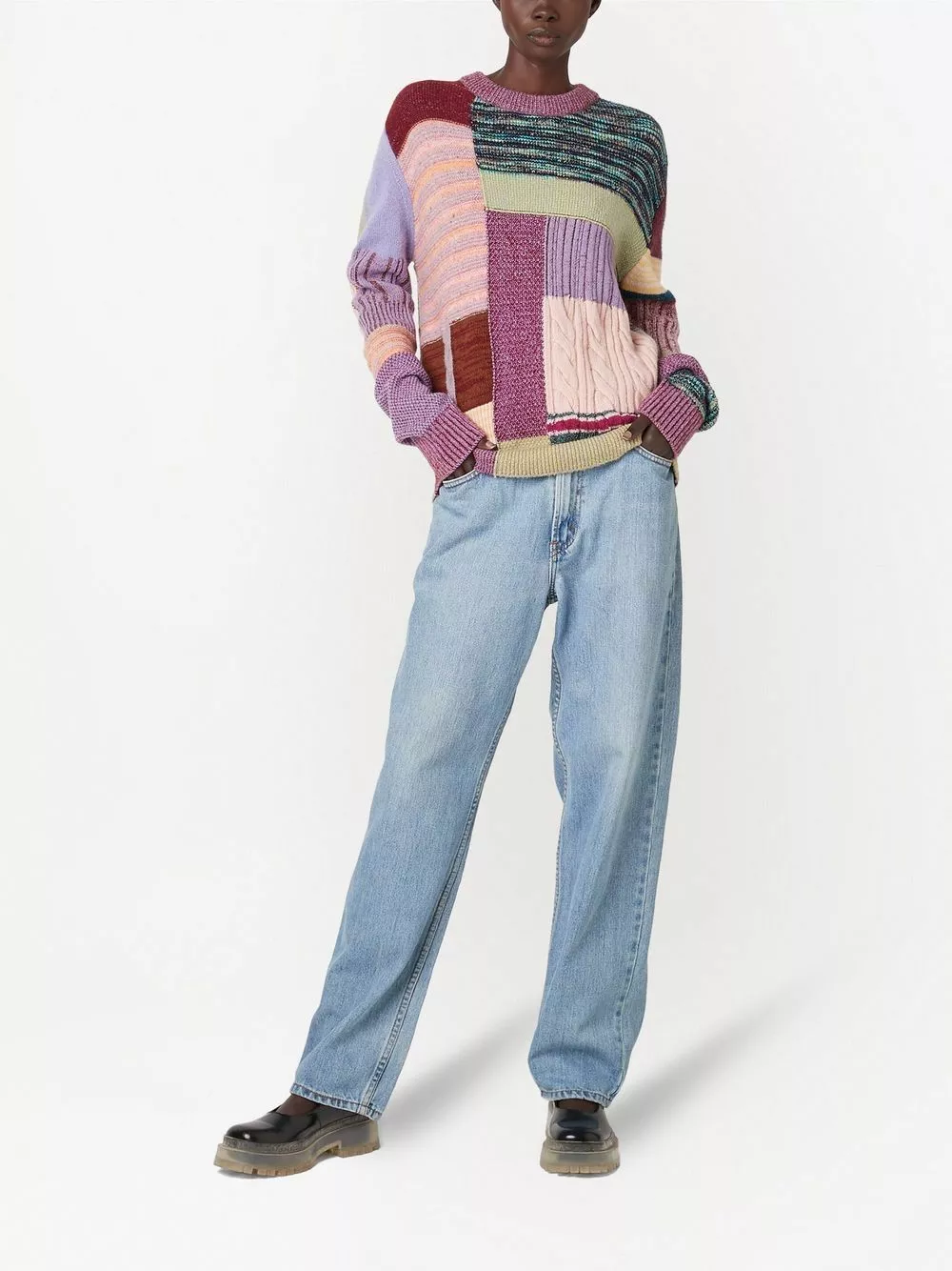 Marc Jacobs’ balance of tradition and innovation is showcased in this long-sleeve, patchwork-design jumper. Featuring panels in different colours and stitching techniques, it adds a creative edge to a relaxed knitwear garment.