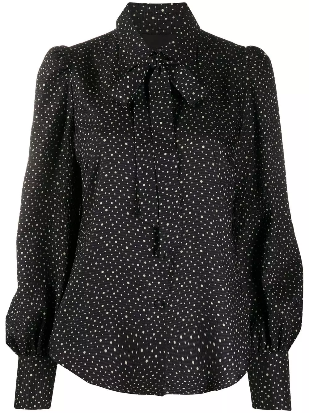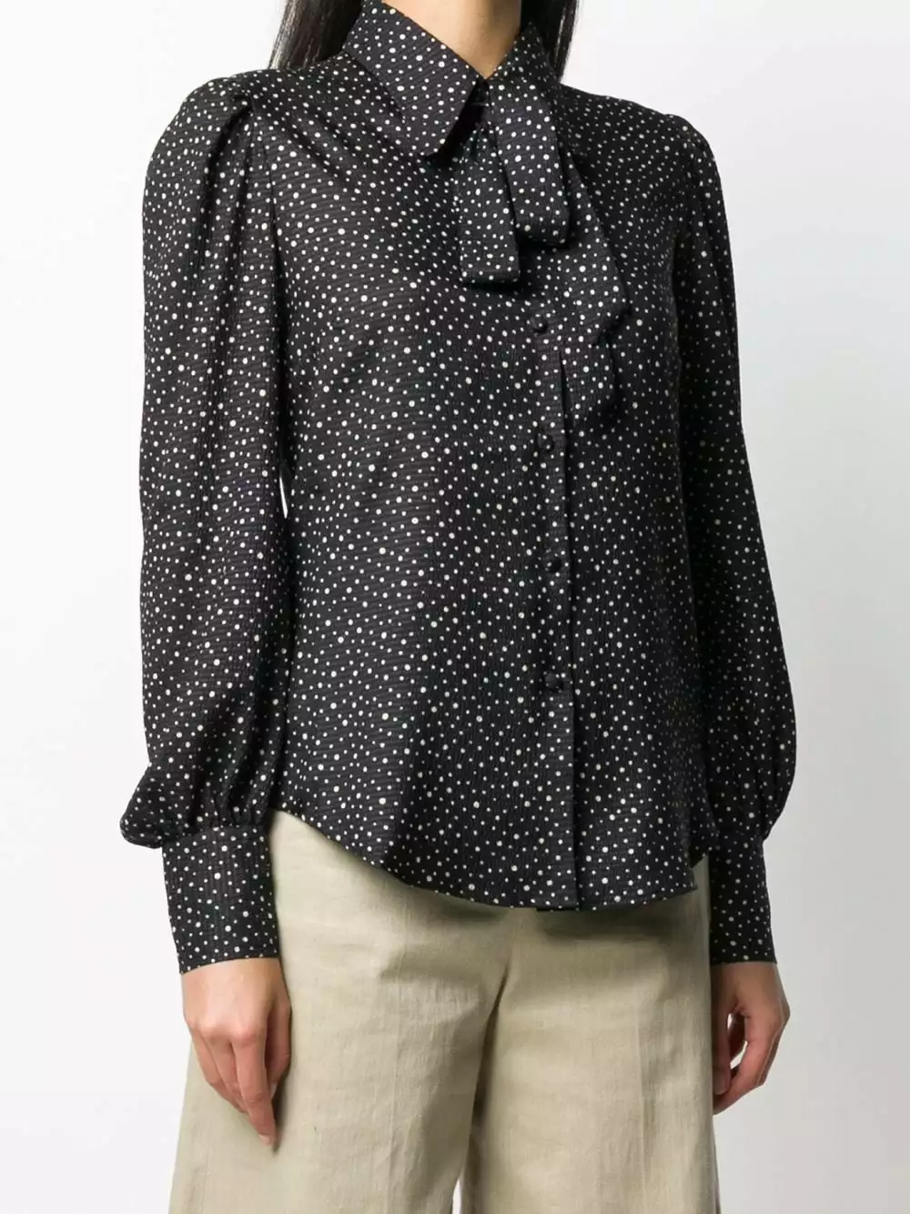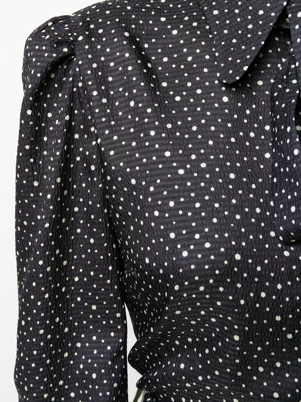 Black The Blouse top from Marc Jacobs featuring a pussy bow fastening, a polka dot print, long sleeves, a fitted waist and a curved hem.