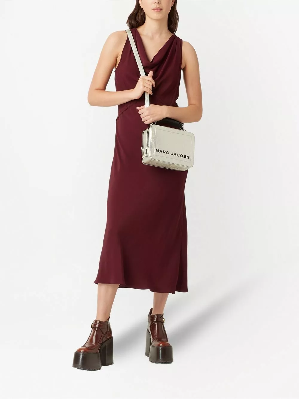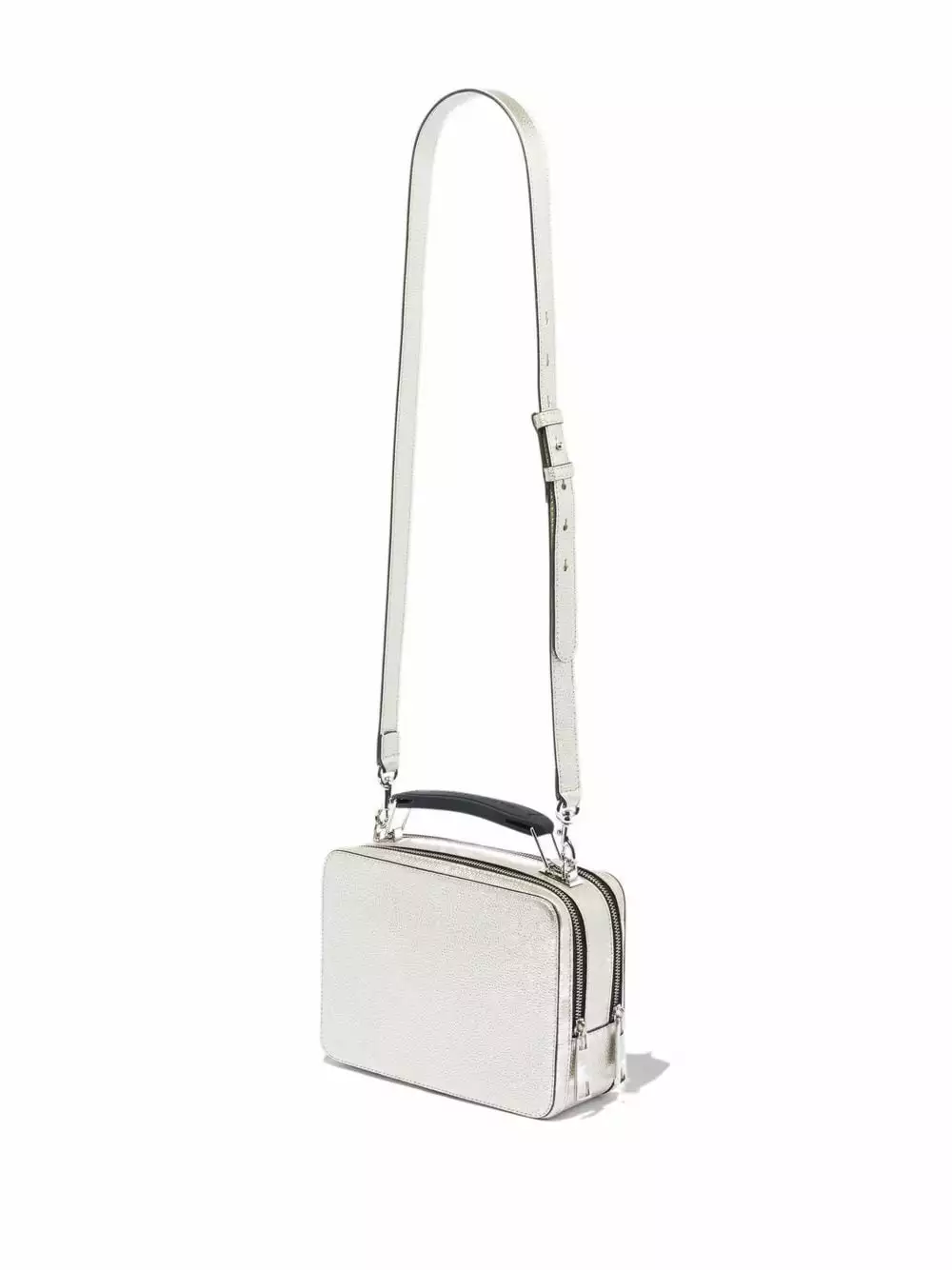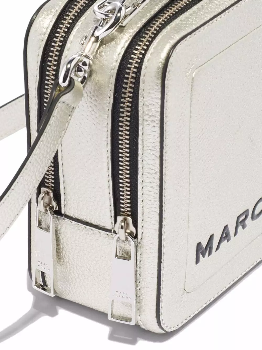 Simplicity and style come hand-in-hand when it comes to The Box 23 crossbody bag from Marc Jacobs. Crafted from silver-tone leather, the boxy silhouette is defined by metallic effect and a front embossed logo.