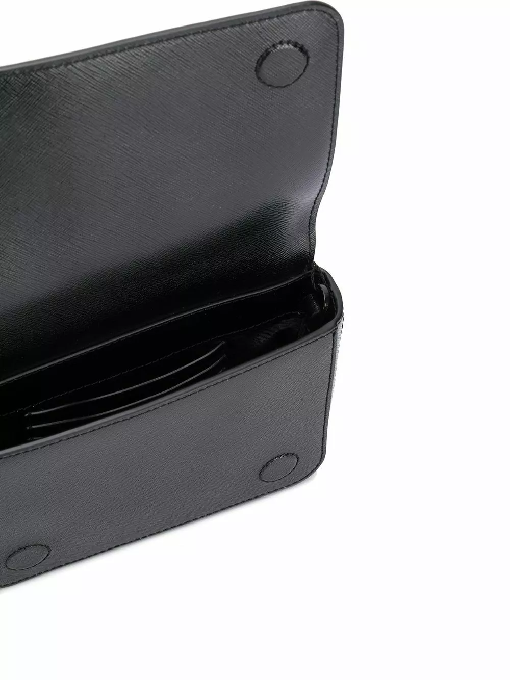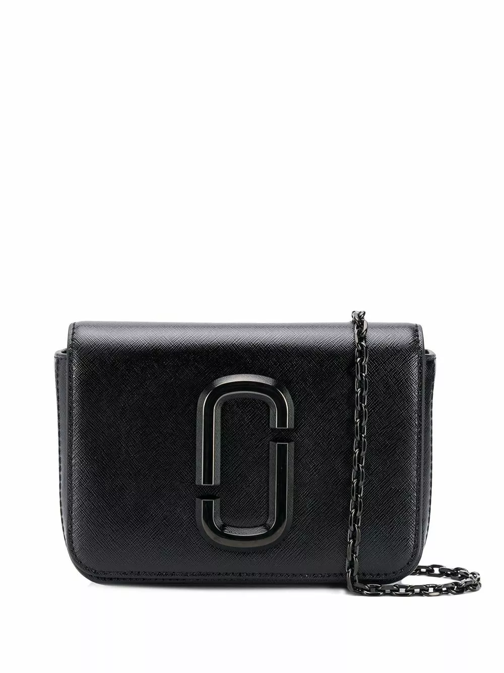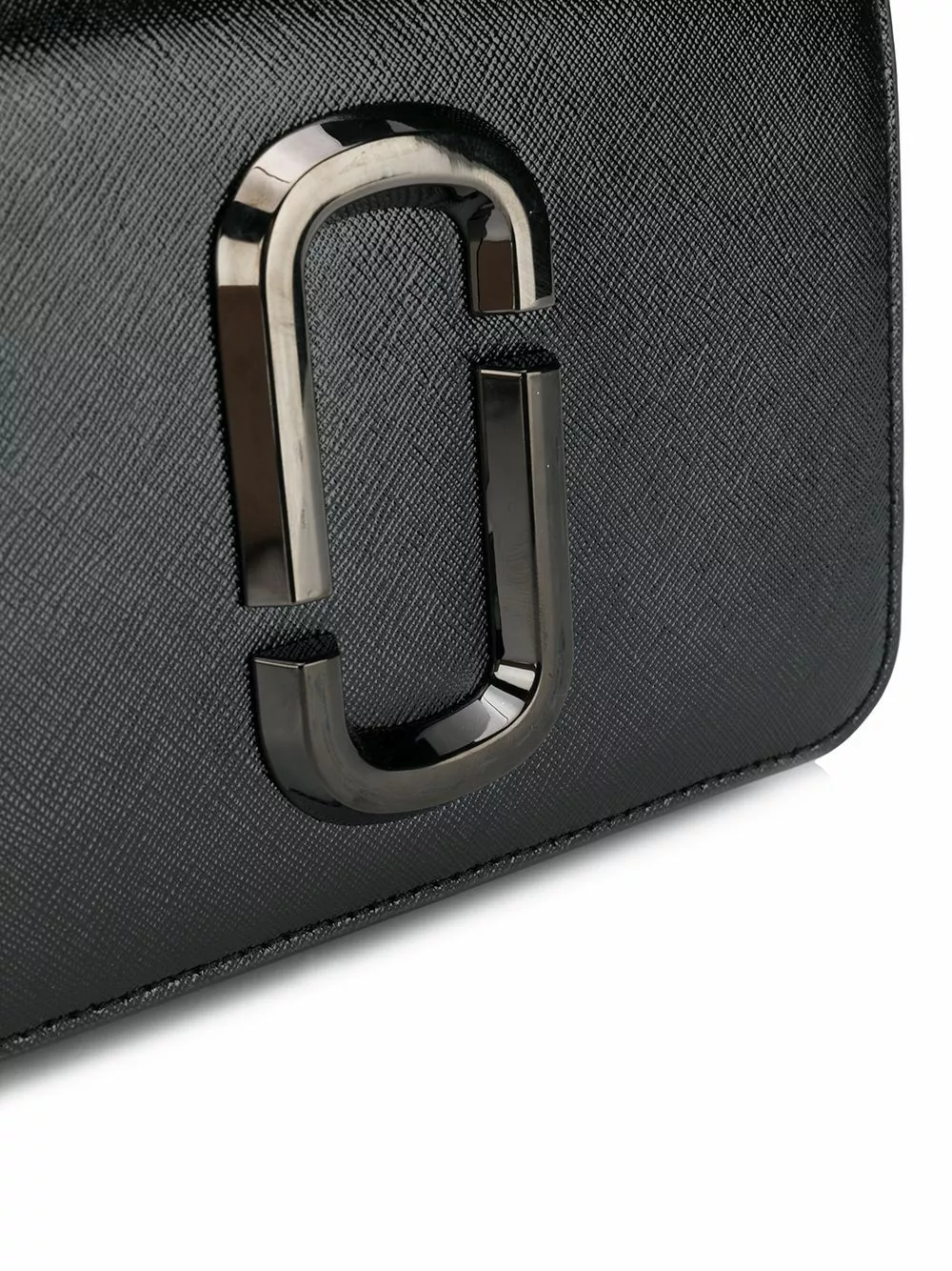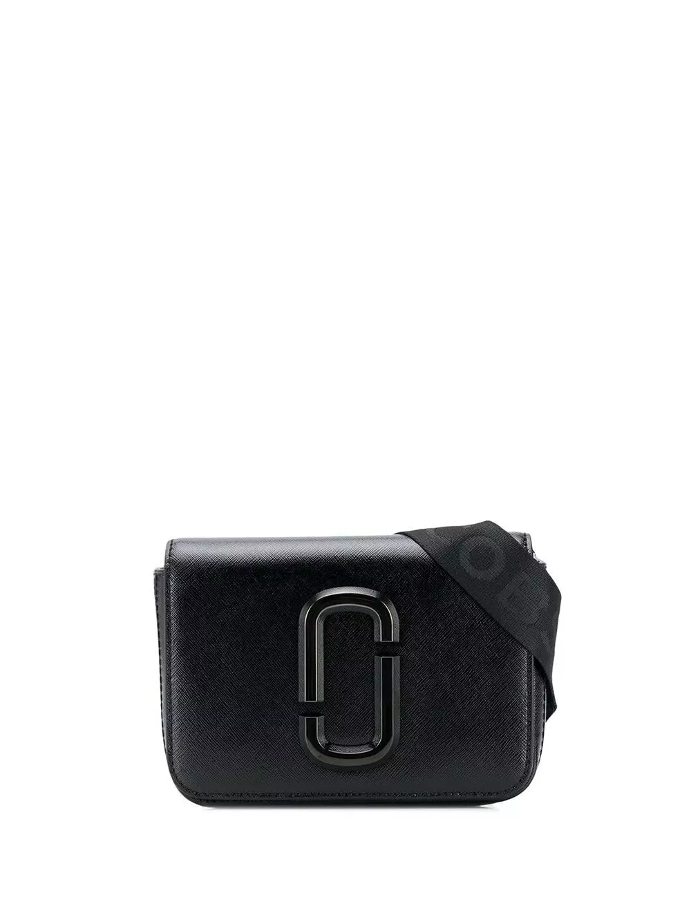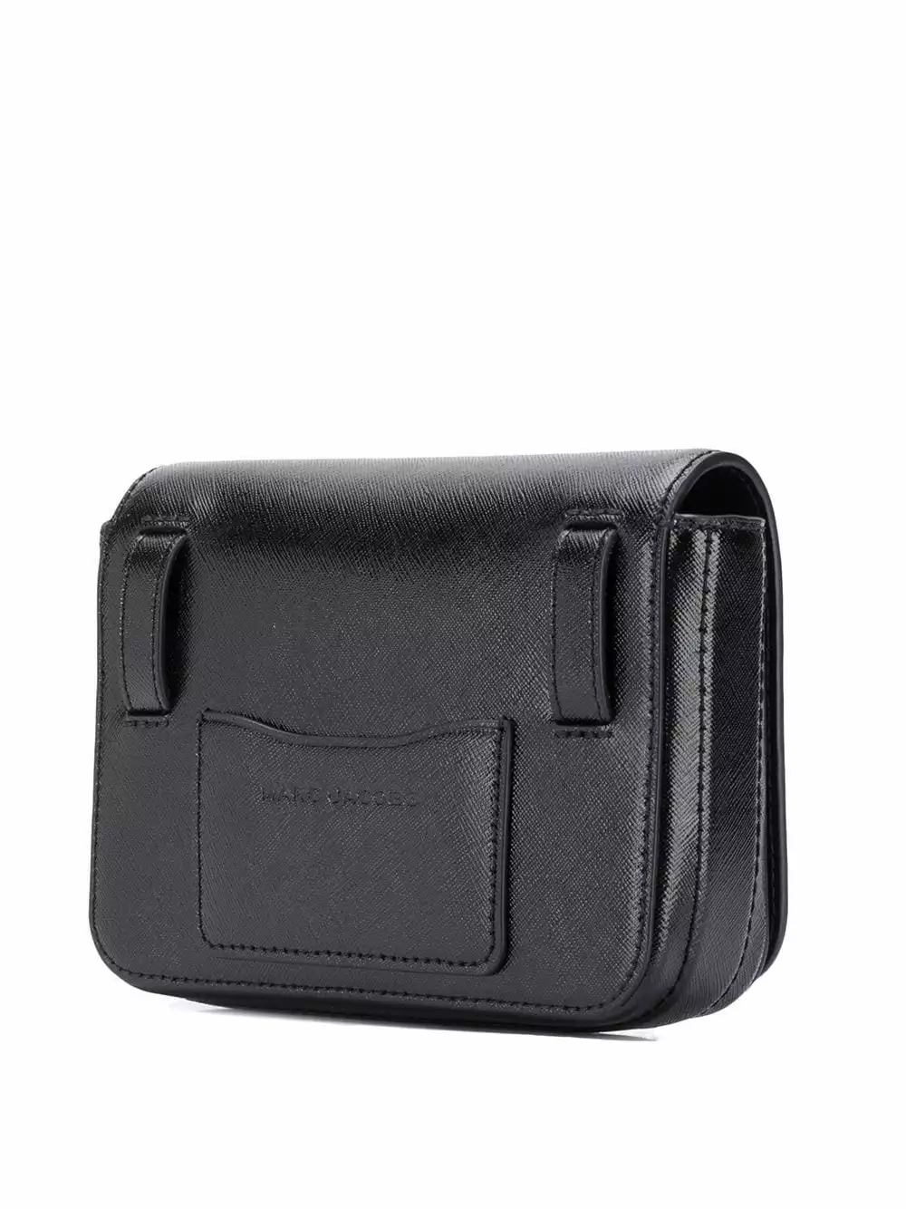 Black leather The Hip Shot belt bag from Marc Jacobs featuring a textured leather detail, a back slip pocket, a foldover top with magnetic closure, a main internal compartment and an internal slip pocket.