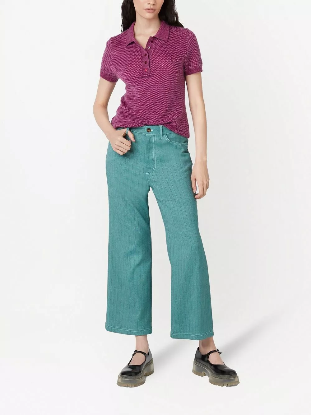 The Pinstripe trousers from Marc Jacobs are a contemporary take on a classic wardrobe staple. Crafted with an all-over pinstripe pattern, the wide-leg pair are presented in a bold green colourway as an update on a timeless silhouette.