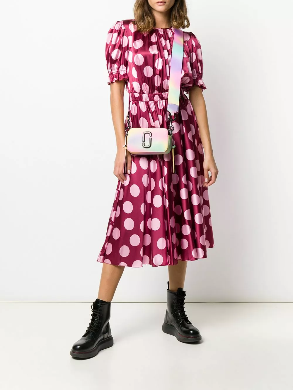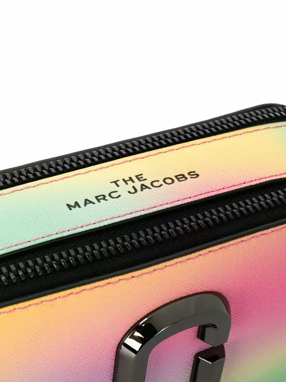 Multicoloured leather The Snapshot Airbrush camera bag from Marc Jacobs featuring a top zip fastening, a cross body strap, a logo plaque, a tie-dye print and a printed logo.