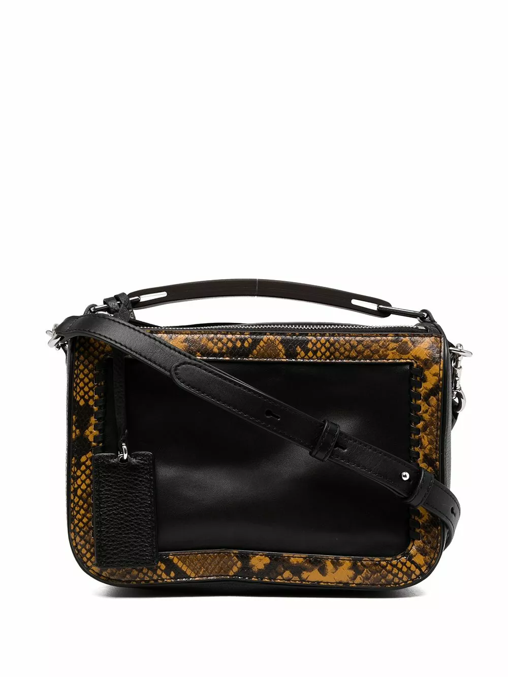 Marc Jacobs reinvents and deconstructs their classic Box Bag every season. Carried by the top handle or removable crossbody strap, this version comes with a bold snake print and a subtle leather logo hangtag.