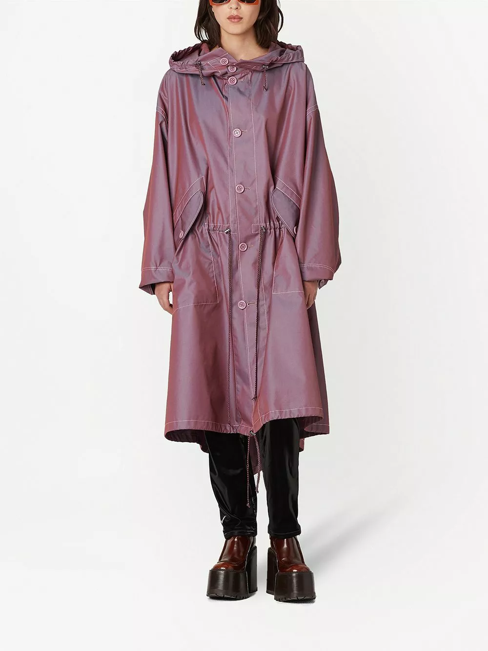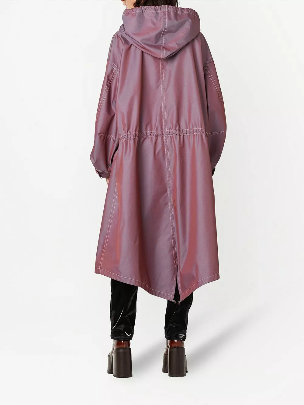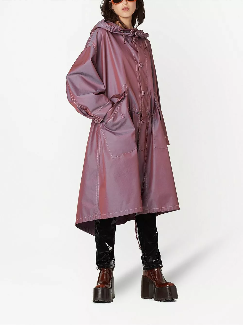 This Marc Jacobs raincoat showcases the brand’s main concepts of creativity and quality. Showcased in the use of an eye-catching material choice with a colour shift, attention is also paid to the technical elements of a toggle-fastening hood and waist which allows adjustability for the wearer.
