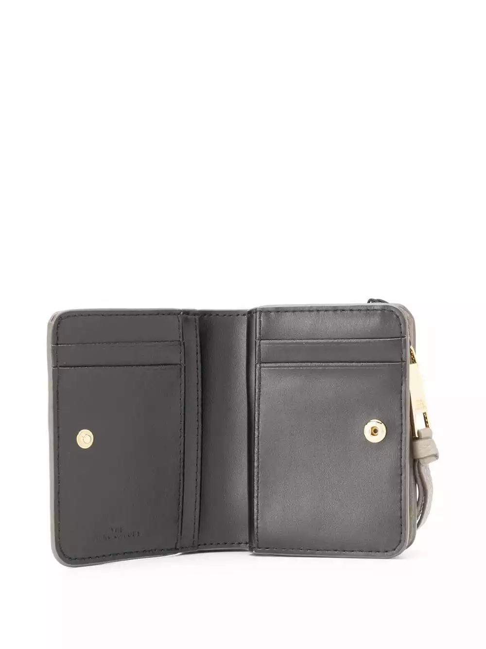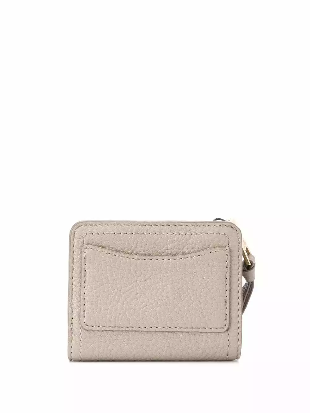 Cement grey leather zipped mini wallet from Marc Jacobs featuring a front logo plaque, an internal slip pocket and multiple card slots.